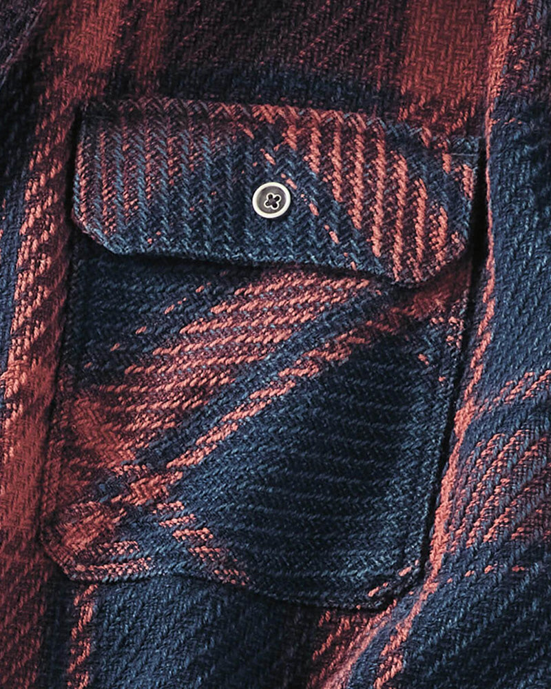 We're glad you've clicked on our new Long Sleeve Plaid Blanket Pocket Shirt,Nostalgia played plaid with a wistful wash. Better than the one you wore in college. Beefy blanket texture, but somehow light on the shoulders. Beach-to-mountains year-round ease. True indigo tone and fade. 2 button-flap pockets. 2-position cuffs.